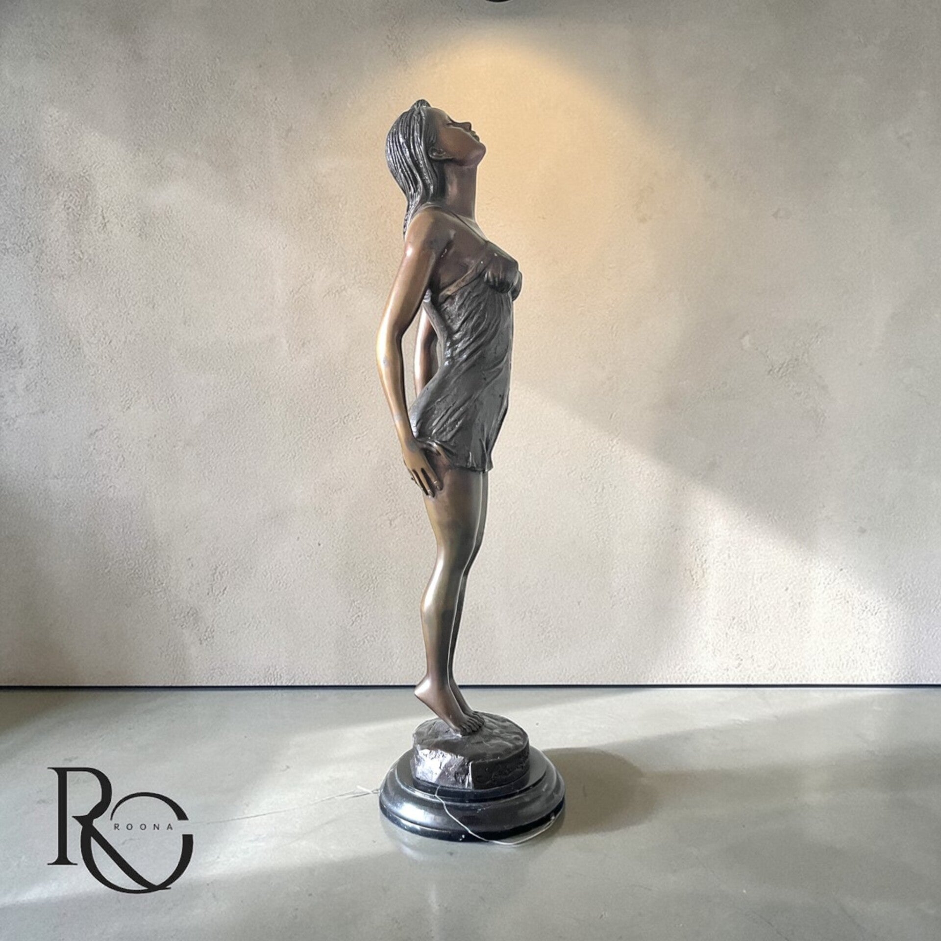 Dit is geen massaproduct, maar een degelijk uitgevoerd studio-brons met een warme, natuurlijke patina. De proporties en afwerking zorgen voor een elegante uitstraling zonder overdaad.