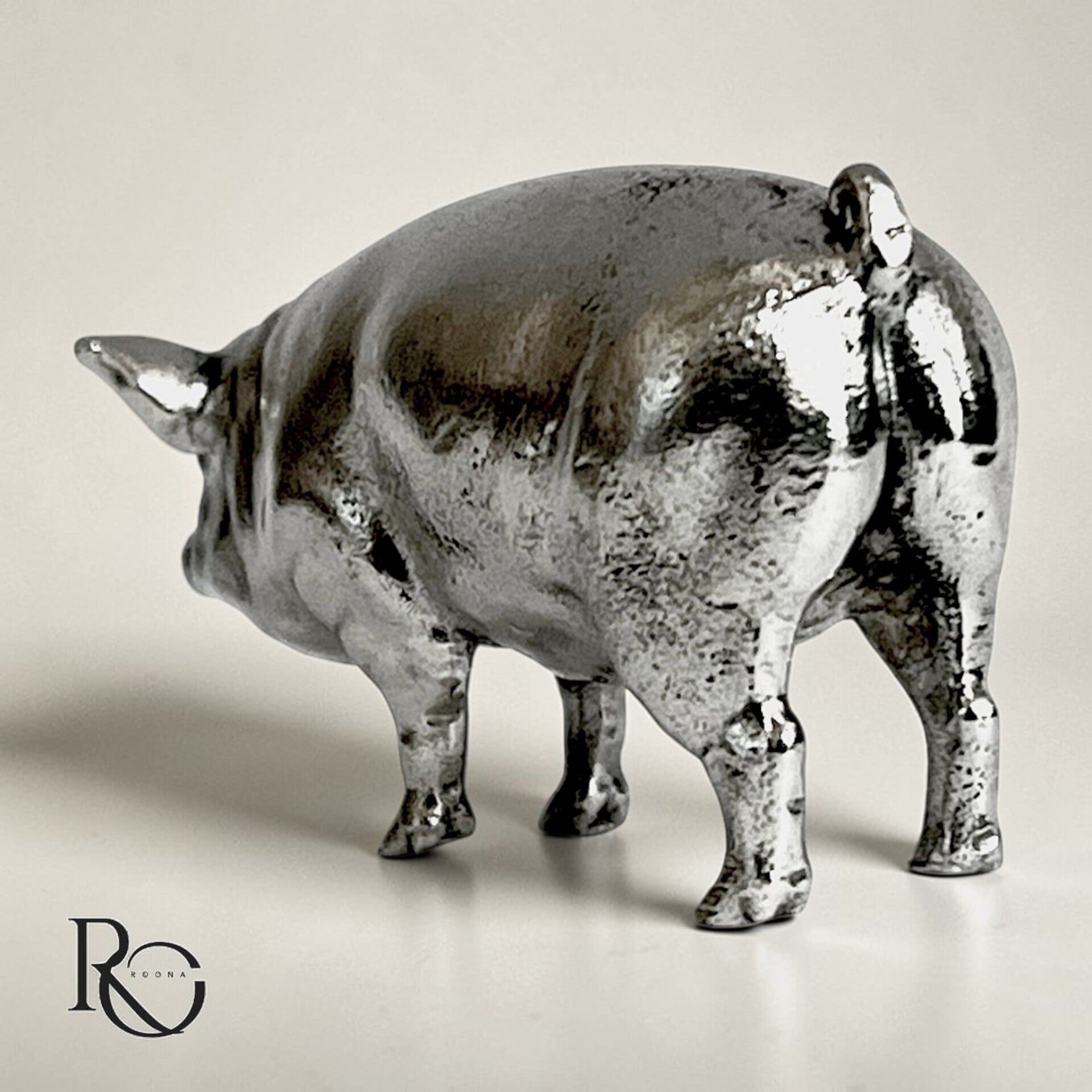 Handgegoten Zilveren Varken Miniatuur (Massief)