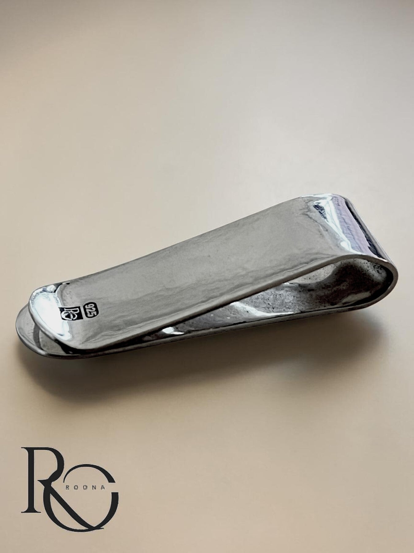 Elke zilveren geldclip wordt met de hand afgewerkt. Kleine verschillen in oppervlak en textuur maken elk stuk uniek.